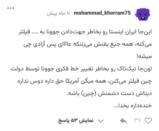 اینجا ایران اینستا رو بخاطر جهتدادن جوونا به …. فیلتر میکنه، همه جیغ بفنش میزننکه عاااای پس آزادی چی میشه!