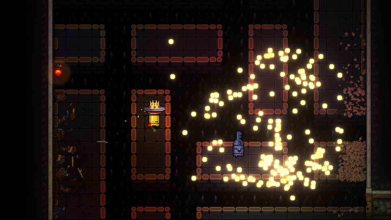 از گیم پلی و گان پلی هم نباید غافل شد که جادوی اصلی در همین جا نهفته است. شلیک پیاپی و جاخالی دادن از موج گلولهها هیچوقت تکراری نمیشود و عبور از مسیر گلولهها بدون آسیب دیدن لذت خاصی دارد. بازی به مهارت شما پاداش هم میدهد و اگر بدون آسیب دیدن باسها را شکست دهید و اتاقها را تکمیل کنید با تجهیزات بهتر و اتاق مخفی و ویژه از شما پذیرایی میشود.